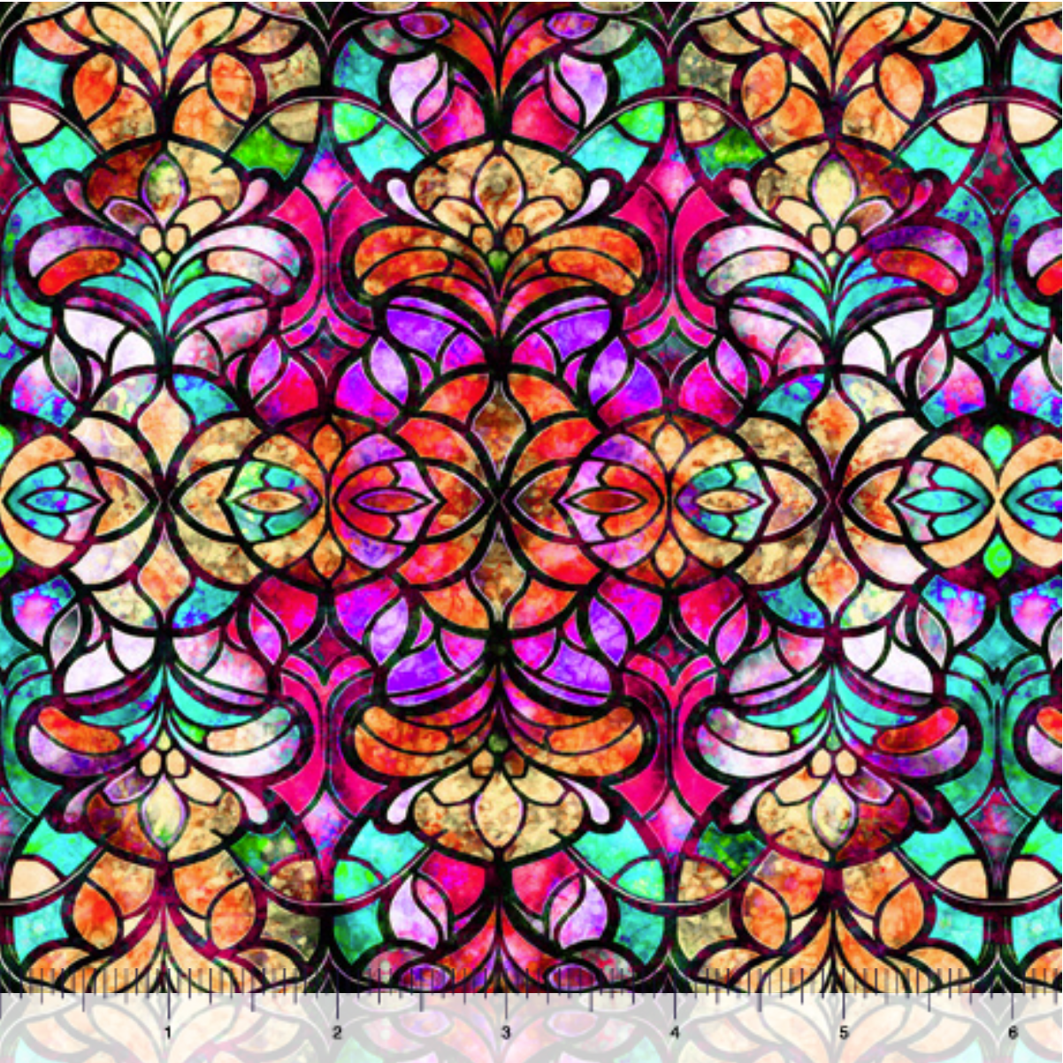 The beauty of stained glass shines bright on fabric in dramatic design and color. A 36” panel is center stage in this exquisite collection of vibrant motifs and coordinates. Mix and match the unique designs for one-of-a-kind projects! ©Morris Creative Group